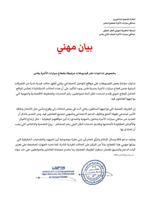 بيان مهني لمهنيي سيارات الاجرة بفاس