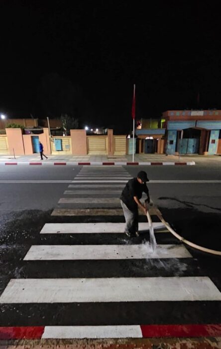ورغم هذه التوضيحات، قرر المجلس إجراء اختبار ميداني بغسل جزء من ممرات الراجلين، وهو ما أظهر زوال الطبقة الرمادية تدريجيا. الأشغال تأتي ضمن مشروع لتحسين السلامة الطرقية، في وقت فتحت فيه السلطات تحقيقا بشأن تخريب وسرقة بعض إشارات مطبات السرعة.
