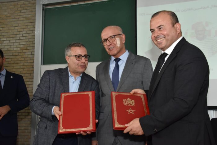 وخلال الجلسة الافتتاحية ،تم توقيع اتفاقية شراكة وتعاون بحضور رئبس الجامعة، بين مدير معهد علوم الرياضة ،والرئيس الوطني الرابطة المغربية للصحافيين الرياضيين تروم تعزيز التعاون بين الجامعة ومختلف الفاعلين في الحقل الرياضي والإعلام، كما تم تكريم عدد من رموز كرة القدم الوطنية المتوجين بكأس إفريقيا للأمم سنة 1976، في التفاتة متميزة اعترافا بمساهماتهم في صنع تاريخ الكرة المغربية.