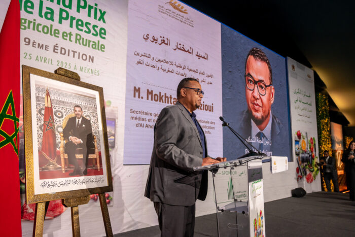 Le Ministre de l’Agriculture, de la Pêche Maritime, du Développement Rural et des Eaux et Forêts, M. Ahmed El Bouari, a présidé l vendredi 25 avril 2025 à Meknès la cérémonie de remise des prix aux gagnants de la 9ème édition du Grand Prix National de la Presse Agricole et Rurale, tenue en marge de la 17ème édition du Salon International de l’Agriculture au Maroc. Ont pris part à la cérémonie, le Ministre chargé des Relations avec le parlement Porte-parole du gouvernement, M. Mustapha Baitas, le Gouverneur de la province de Meknès, le Président de l’Association du SIAM, M. Mohammed Fikrat, le représentant de la Mutuelle Agricole Marocaine d’Assurances (MAMDA).